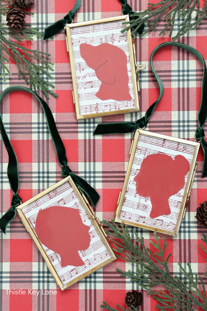 DIY Silhouette Keepsake Ornaments. See how to create special Christmas ornaments with an old world charm, featuring silhouettes of family members or a cherished pet. You will look forward to decorating with these precious ornaments for many years to come.
