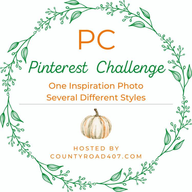 It’s time for our August Pinterest challenge. This month we are creating summer to fall mantels or shelves. If this is your first time to join us for a Pinterest challenge, this is how it works. Our host Cindy of County Road 407, selects an image for us to recreate, and each participant puts their own spin on the photo.
