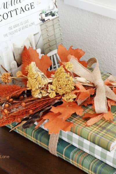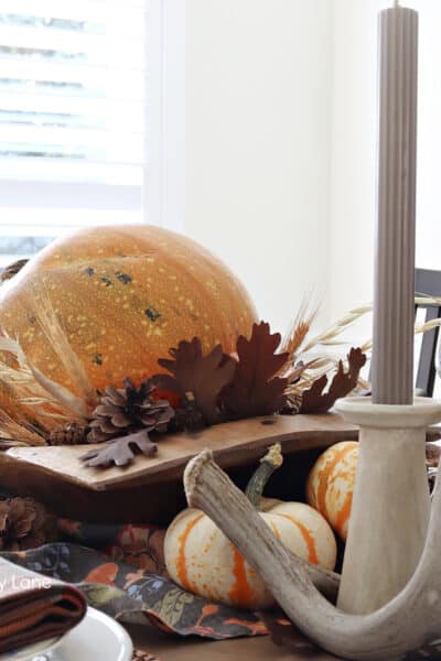 For more ideas, stop by my Fall Tablescape post to see a vintage embroidered table runner.